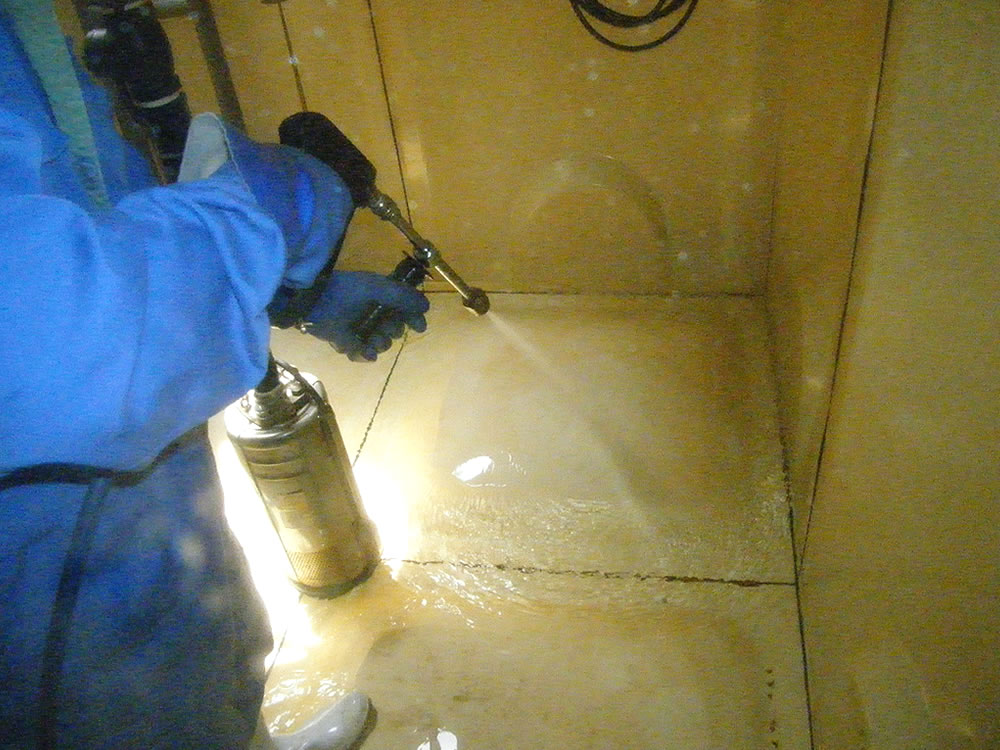 人が直接触れる飲料水をより衛生的かつ安全に供給するためには、年1回の貯水槽清掃は必ず実施しましょう。「高圧洗浄車」を使用して内部に付着した汚れを効率よく除去することができます。